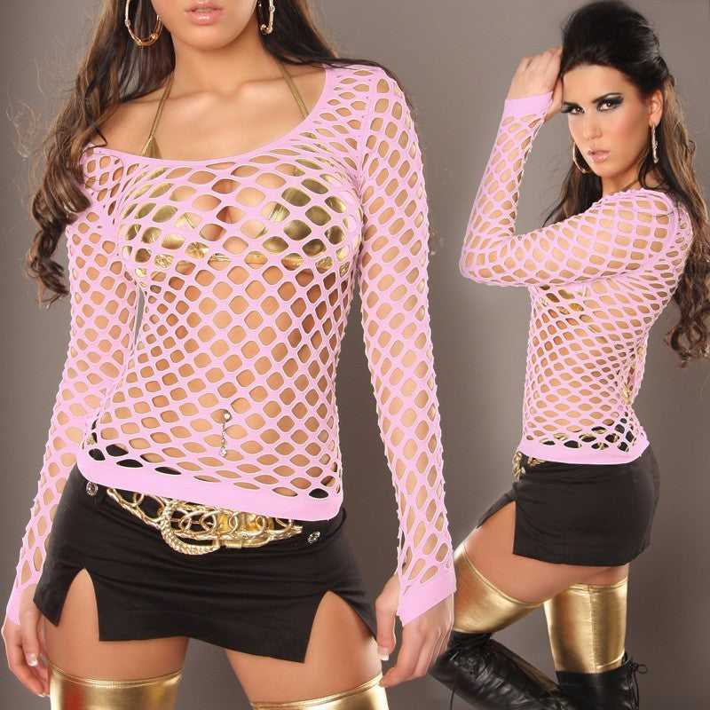 Sexy Maglietta donna in rete manica lunga taglia unica